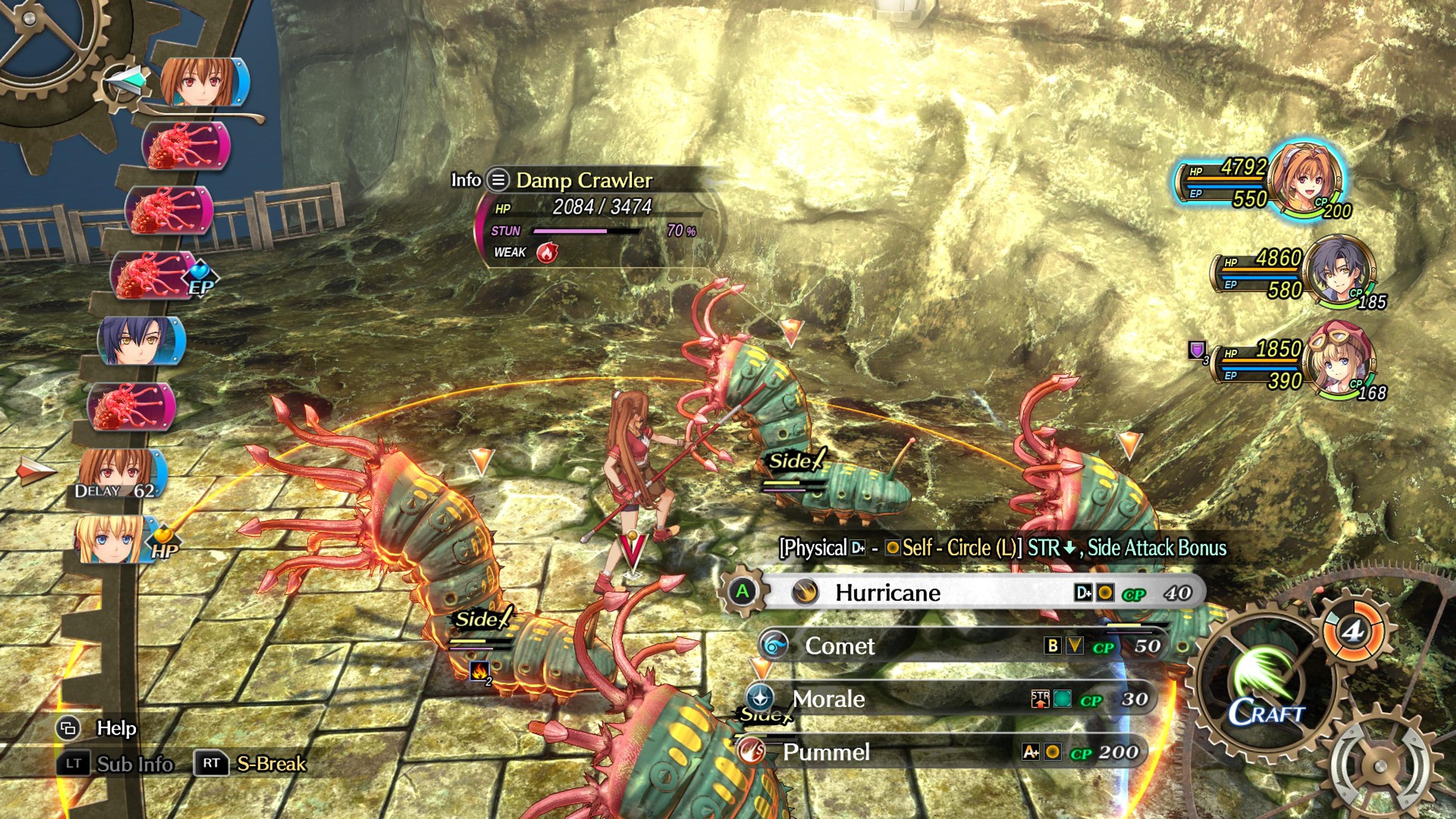 The turn-based combat system of this game, though, is what is interesting. This game uses turn order similar to Final Fantasy X’s timeline, and the key to winning a decisive battle is to manipulate this timeline. It’s all about utilising tools and abilities to stun enemies, delay their turns, interrupt their spells, or using the S-Craft system (think Limit Break from Final Fantasy) to interrupt enemies’ turns and unleash big attacks. What’s even better is that the game gives you so many tools to deal with any kind of situation. If you know for sure you can’t stun an enemy in time before it can unleash an attack, with a properly built team composition, you would have an Earth Guard to help protect your team for a turn.