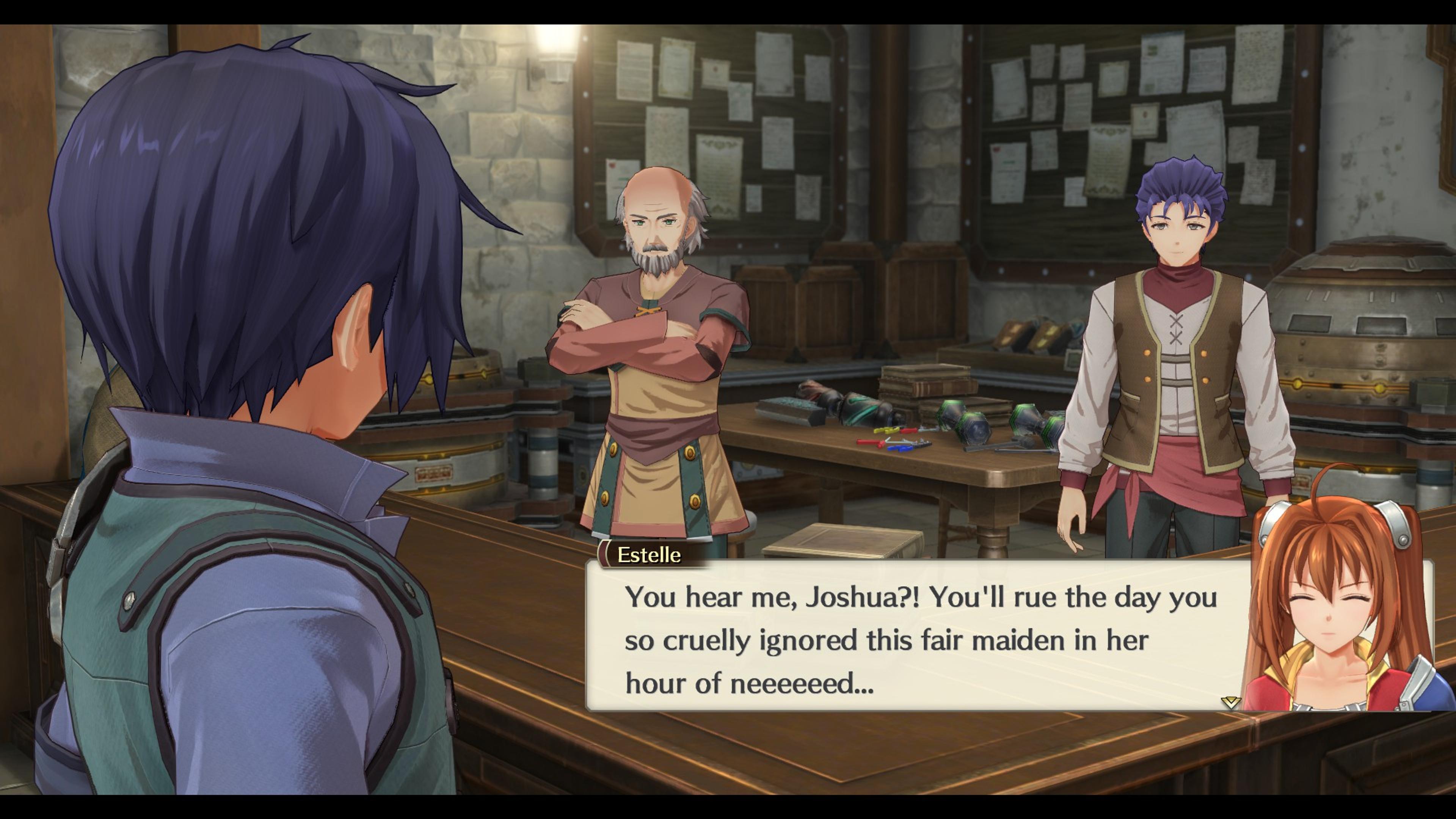 Trails in the Sky 1st Chapter follows the story of the jolly and headstrong Estelle Bright and the stoic and booksmart Joshua Bright; adopted siblings who have just completed their apprenticeship with the Bracer Guild (the aforementioned organisation) in the footsteps of their father, Cassius Bright. With their father missing after being assigned a mysterious task, the pair went on a quest to find him while also completing tasks to get promoted to “Senior Bracers” from the five major cities in the kingdom. Chaos ensues as the pair encounters an eccentric (and broke as hell) journalist, getting into a fight with the regional gang, rescuing people from low budget sky pirates and helping mad scientists baby sit his granddaughter.